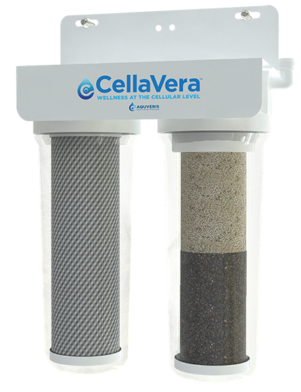 CellaVera™ by Aqueveris™ is a healthy water system that removes harmful contaminants like forever chemicals and microplastics (VeroPure™) while adding natural minerals and hydrogen for alkaline boost, energy, performance, and hydration. (VitaCell™)